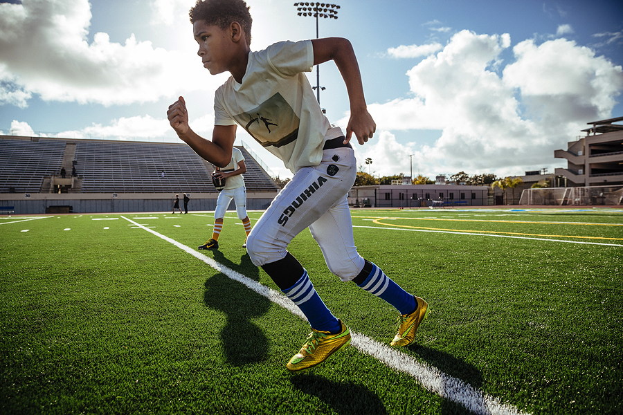 Amir liebt Football – am liebsten würde er jede freie Minute auf dem Sportplatz seiner High-School verbringen. Gemeinsam mit drei anderen talentierten Sportlern ist er das Testimonial der aktuellen ABC123me Kampagne. Das englische Label aus London entwirft hochwertige Streetwear und ist eines der wenigen Brands, die sich auf Mode für Jungen spezialisiert haben.