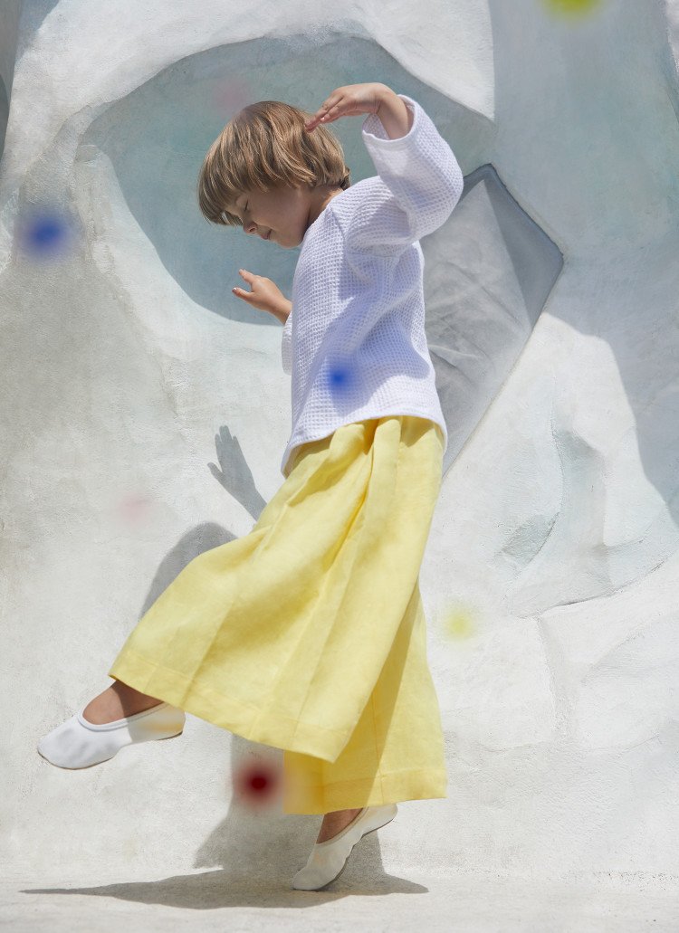 Koreaner lieben Kitsch, auch wenn es um Kindermode geht. Es kann selten zu niedlich sein, hier noch eine Rüsche, da noch eine Grinsekatze … Für alle, die es weniger edgy und verspielt mögen, ist Tambere da: Das junge Label aus Seoul entwirft minimalistische Avantgarde Mode mit einem Hauch von Zen. Dass die Sommerkampagne „Tanning in the sun“ allein schon beim Betrachten für Entschleunigung sorgt, ist also kein Wunder …