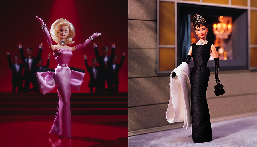 Barbie als Marilyn Monroe 1997 und als Audrey Hepburn in Breakfast at Tiffany’s 1998 – Images © Mattel Inc.