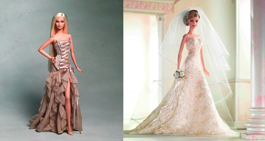Die Collector Dolls – Barbie in Versace 2004 und im Hochzeitskleid von Carolina Herrera 2005 – Images © Mattel Inc.