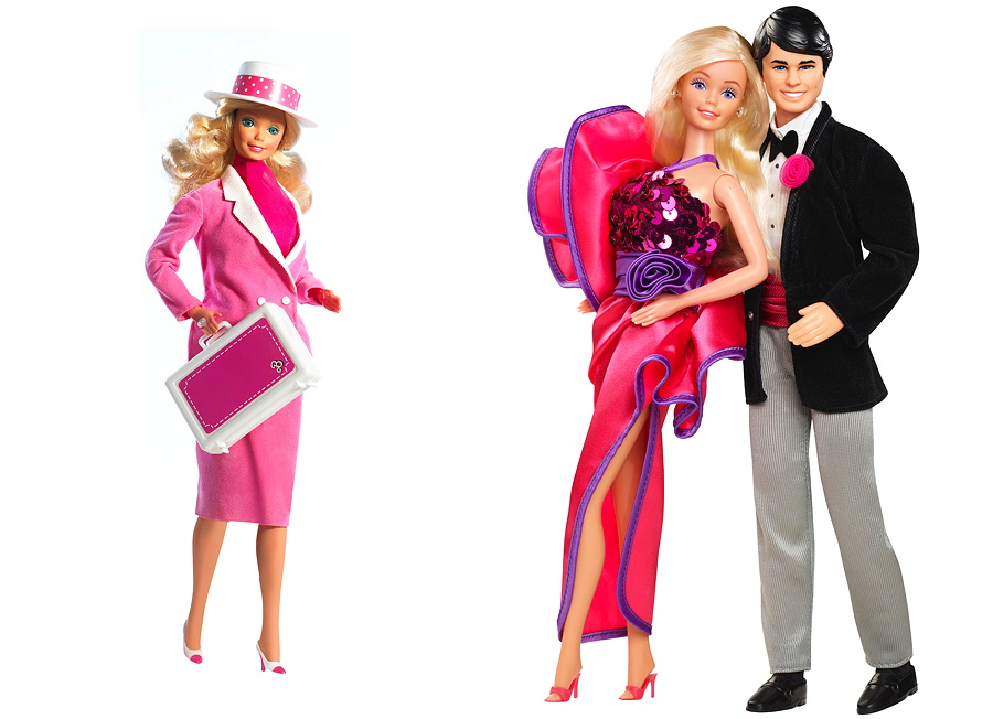 Die Day-to-Night Barbie von 1985 im Business Look und das Dream-Date-Couple im Jahr 1984 – Images © Mattel Inc.