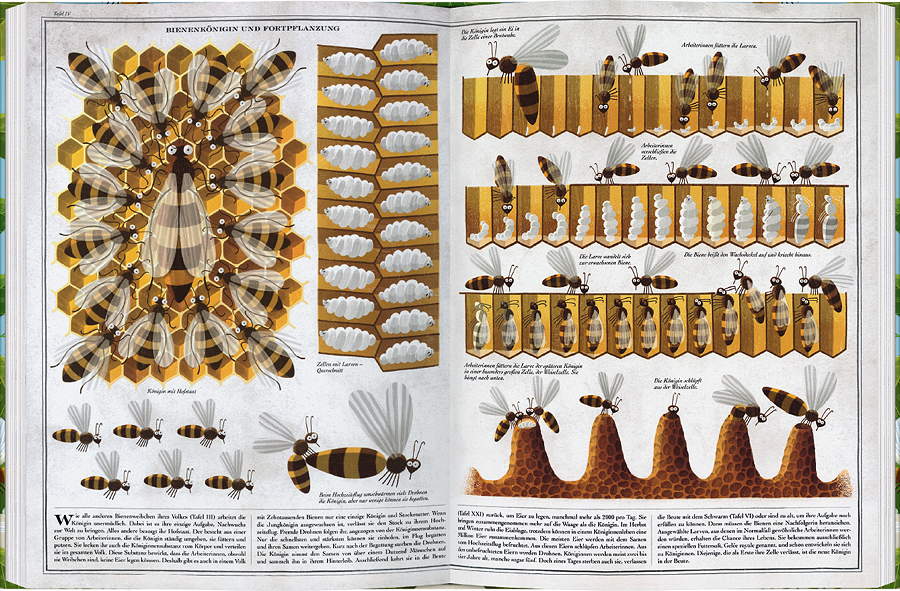 Schon die Steinzeitmenschen verewigten sie in ihren Höhlengemälden, die alten Ägypter sahen in ihnen die herabgefallenen Tränen des Sonnengottes Ra und Napoleon ließ sich seinen Krönungsmantel mit goldenen Bienen besticken. Seit jeher üben die fleißigen Honigsammler eine große Faszination auf den Menschen aus. Jetzt hat der polnische Cartoonist Piotr Socha ein fesselndes Sachbilderbuch geschaffen, welches fernab von drögen Biologiestunden die Geschichte von Mensch und Honigbiene erzählt …