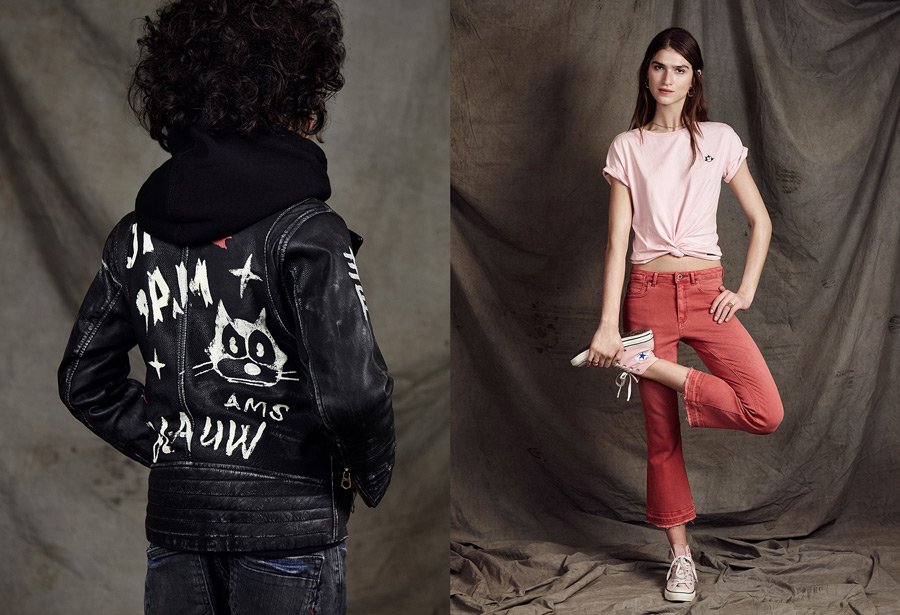Hier kommt wirklich keiner zu kurz – Scotch and Soda liefert mit seinen Felix-Styles Mini-Me Looks für die ganze Familie. Vater und Sohn, Mutter und Tochter können bei dieser Special Edition ihrer Leidenschaft für Comic-Prints frönen: Die urbane Bomberjacke beispielsweise gibt es für Mädchen und in Damengrößen, die Jungs können sich das gleiche Polohemd in Streifen-Optik überziehen, selbstverständlich mit Felix the Cat-Logo. Des Weiteren grüßt der kultige Kater modemutig von einem rosa Männer-Hoodie, einer Boyfriend-Jeans oder einer toughen Lederjacke für Kinder.