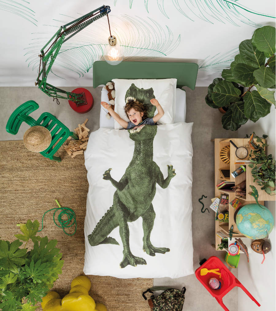Echte Dino-Fans können sogar im Maul eines gefährlichen Tyrannosaurus Rex friedlich einschlummern? Ja, zumindest wenn es nach Peggy van Neer geht. Die Niederländerin, die immer für ein Späßchen zu haben ist, beweist mit ihren humorvollen SNURK Designs immer wieder, dass Bettwäsche vor allem eines nicht sein muss: nämlich zum Gähnen langweilig.