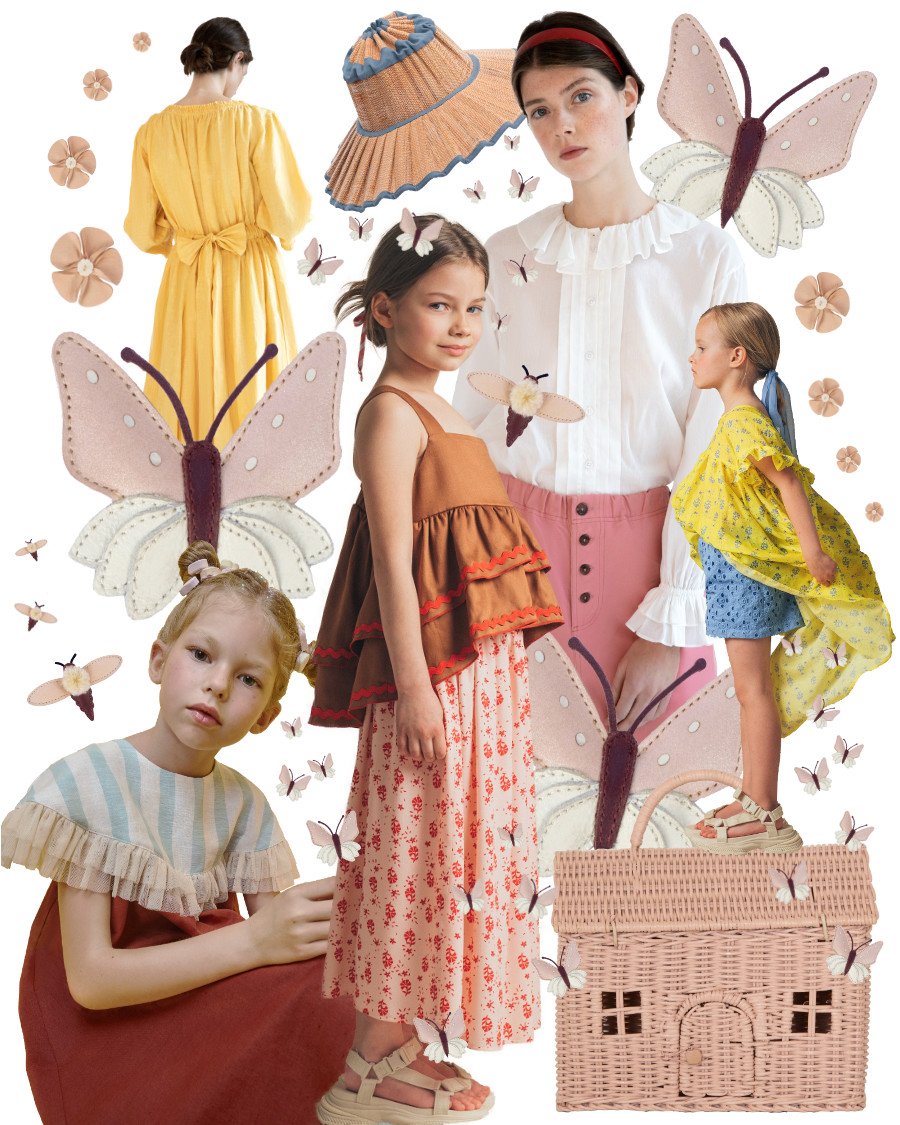 Must-Haves für das Picknick mit der feinen Gesellschaft von Highbury: in der Cottage-Clutch transportiert Emma die Cupcakes, das hauchdünne „Empirekleid“ weht göttinnengleich im Sommerwind … (von oben nach unten im Uhrzeigersinn): Sea Side Capri Hut für Kinder von Lorna Murray (auch in Erwachsenen-Größen erhältlich) | Rüschenbluse für Damen von Caramel | Leder-Haarspange Butterfly von Donsje | Chiffon-Tunika von Paade Mode | Shorts aus englischer Spitze von Paade Mode | Casa Clutch von Olli Ella via Smallable | Viskose-Rock von Paade Mode | Volant-Top von Paade Mode | Kleid von Popelin Kids | Leder-Haarspange Bumblebee von Donsje | Midi-Kleid mit Raffungen und Schleifendetail von Caramel | Leder-Haarspange Peony von Donsje.