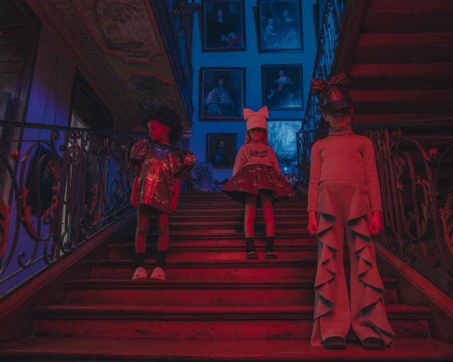 Jeden Tag ist Halloween, nicht wahr? … Caroline Bosmans feiert 365 Tage im Jahr eine Gruselparty! Die belgische Designerin ist für die Kindermodewelt das, was Tim Burton für die Filmwelt ist, ein Ausnahmetalent mit einem Hang zum Makaberen. Wir erinnern uns an ihren Slogan „Save Animals, Eat People“, beklemmende Krankenhaus-Settings und einen endlosen Shitstorm auf Instagram: Die polarisierenden Kollektionen der Shocking Queen füllen ganze Bände mit Schauergeschichten. „Drama“, Caroline Bosmans aktuelle Winterkollektion entführt uns in ein mysteriöses Spukschloss …