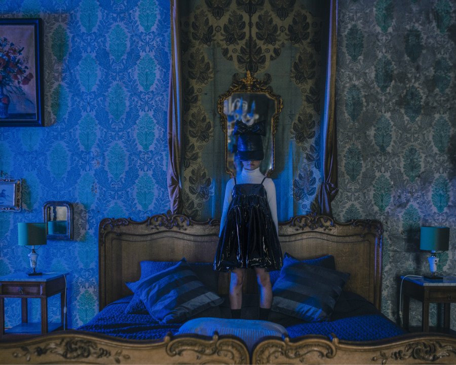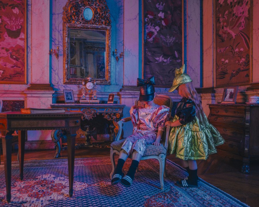 Hat die Flämin etwa zu viele Gruselfilme gesehen? Wie Geisterkinder spuken Caroline Bosmans entrückte Geschöpfe durch ein verlassenes Anwesen. Weiße Nachthemden tragen ihre stummen Gestalten allerdings nicht, dafür voluminöse Partykleider, fluffige Petticoats und Schlaghosen, die man eher auf einem Abba-Konzert vermuten würde als in den ehrwürdigen Hallen eines Schlosses …
