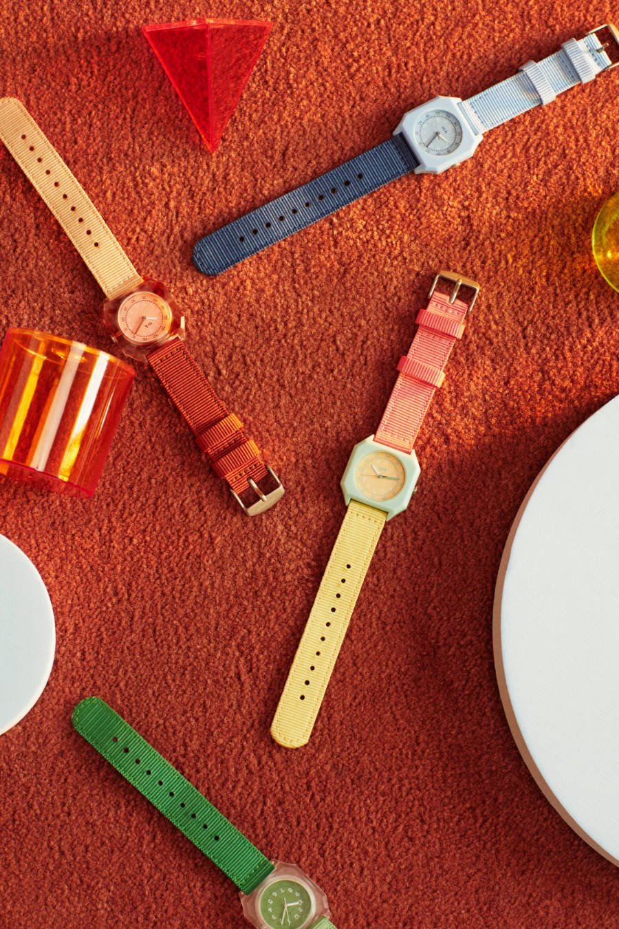 Als wollten sie einen Kaugummiautomaten plündern, drehen Isabelle Gavray und Alessandro Cuomo die Zeit zurück, um stilsicher im Jahr 1987 zu landen: Bubble Gum, Blue Cotton Candy, Cinnamon Roll und, zum Detoxen, Green Smoothie. Die vier neuen Kinderuhren von Mini Kyomo gehen aber nicht nur optisch mit der Zeit – ihr robustes Gehäuse sowie die abnehmbaren, waschbaren Armbänder werden aus recycelten Materialien hergestellt.