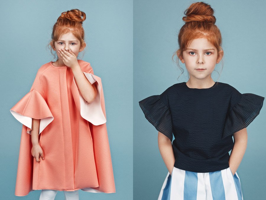 Das Label von Ieva Juodelyte bietet Demi Couture für Kinder. Das sind keine halben Sachen, sondern Kindermode, bei deren Design und Herstellung die hohe Kunst des Schneiderhandwerks in gleicher Weise aufgewendet wird, wie man es von der Haute Couture kennt. Genauso erlesen vom Material, genauso kühn in Schnittführung und Stoffbearbeitung, genauso akribisch handgefertigt, aber eben nicht auf Bestellung und nach Maß, sondern fertig im Geschäft erhältlich, eine Art Prêt-à-Couture der Kindermode.