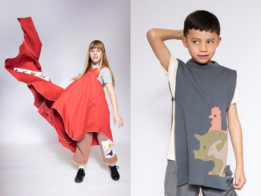 Sustainable is sexy! Nachhaltige Brands sind immer mehr auf der Pitti Bimbo zu sichten. Allen voran das vegane und Peta-geprüfte Kindermodelabel Infantium Victoria. Die beiden Gründerinnen Julia Gaydina und Dinie van den Heuvel sind wild entschlossen, „die Grenzen der zeitgenössischen Kindermode weiter auszuloten“. Für den Winter 22/23 stellten sie sich die ernste Frage: „Sind wir Menschen der Asteroid, der zur Zerstörung des Planeten führt?“ Die Strick-Styles mit grasenden Dinos und Nutztieren sind zumindest schon mal ein modischer Anfang, sich mit Themen wie umweltschädliche Tierhaltung auseinanderzusetzen.