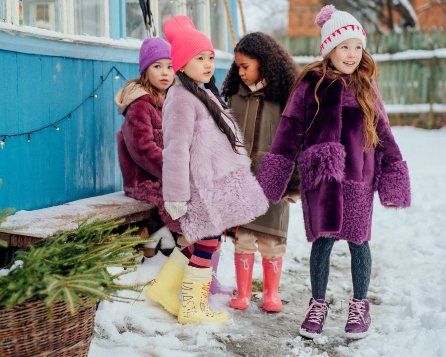 Von Himbeerrot über Kiwigrün bis Brombeerlila. Die kommende Winterkollektion von Vlasta Kopylova Kids leuchtet in allen sieben Farben des Regenbogens. Bekannt wurde die Griechin Vlasta Kopylova mit extravaganten Intarsien-Pelzmänteln für Frauen. Heute verwendet sie ausschließlich sorgfältig ausgewählte und zertifizierte Materialien wie Shearling und Suede Leder. Die Mäntel der Kids Kollektion für den nächsten Winter sind aus Merino- und Toskana-Schaffell sowie aus dem gelockten Tigrado-Lammfell.