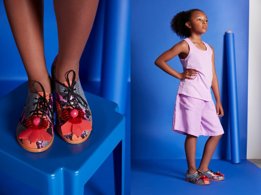Den Engländern wird ja seit jeher ein Hang zur Exzentrik nachgesagt. Man denke nur an Oscar Wilde, Vivienne Westwood oder Alexander McQueen. Designerin Fay Murphy und Ehemann Tom, ein Schuhmacher, haben wohl auch eine ordentliche Dosis britische Craziness im Blut. Denn mit ihrer Deluxe Kollektion „COLOURS OF THE TRIBE“ schießen sie mal wieder den Vogel ab: Mutige Schlangenprints, Statement-Blumenverzierungen im Stil der Omo Valley-Stämme in Ostafrika und ein Farben-Mix aus Fuchspelz-Resten lassen die hochwertigen Kinderschuhe von Chapter 2 besonders wild und exotisch aussehen.