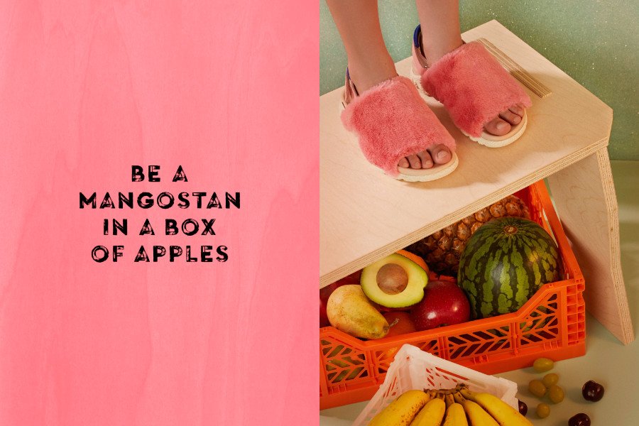 Trau dich etwas ganz Besonderes zu sein! Zum Beispiel eine Mangostan in einer Apfelkiste. © Carmen Ordoñez
