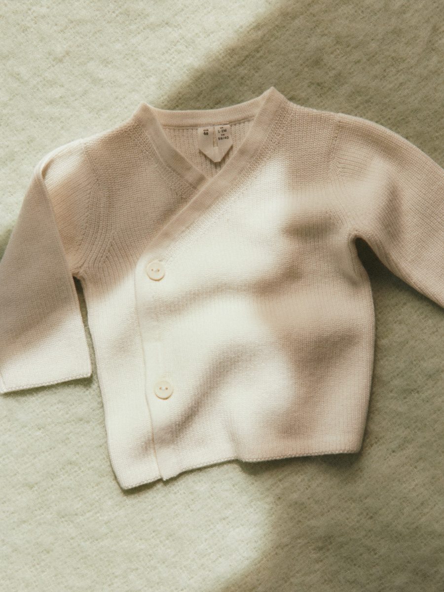 Quiet Luxury für die Allerkleinsten: Diese ARKET Wickelstrickjacke ist der Inbegriff des Timeless Nordic Style