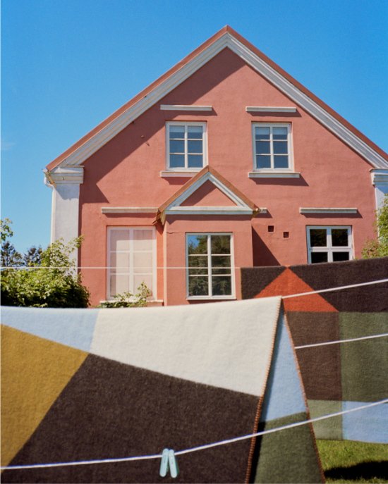 Kunst in der Mode und im Haus: Vor Karl-Gustavs Atelier wehen die Wolldecken aus der COLOURS-Kollektion