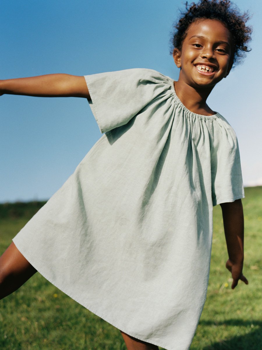 Reißfest, schmutzabweisend, langlebig. Leinen ist hart im Nehmen und damit für Kinderbekleidung bestens geeignet. Es knittert. Who cares? Die Kinder stört’s bestimmt nicht. Jedenfalls gibt es bei steigenden Temperaturen nichts Angenehmeres auf der Haut als die kühle, glatte Naturfaser in den für ARKET typischen Oversized Schnitten. Da kommt Luft an die Haut.