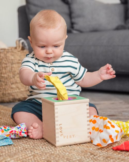 Guck-guck, Peek-a-boo, Coucou – das internationale Spiel ist für Kleinkinder mehr als reines Amüsement. Toddler trainieren dabei eine wichtige kognitive Fähigkeit, nämlich die Objektpermanenz. Bei Lovevery wird das Hide and Seek zum Slide and Seek, samt Holzkistenversteck. Spielen, um zu lernen! Wo wir beim Thema Feinmotorik und dem Pionier-Set wären: Geht es nach Lovevery, können Geschicklichkeit und Fingerstärke schon ab dem 16. Monat trainiert werden, etwa mit einem Perlen-Auffädel-Kit oder einem Gemüsegarten-Puzzle für den ersten Pinzettengriff.