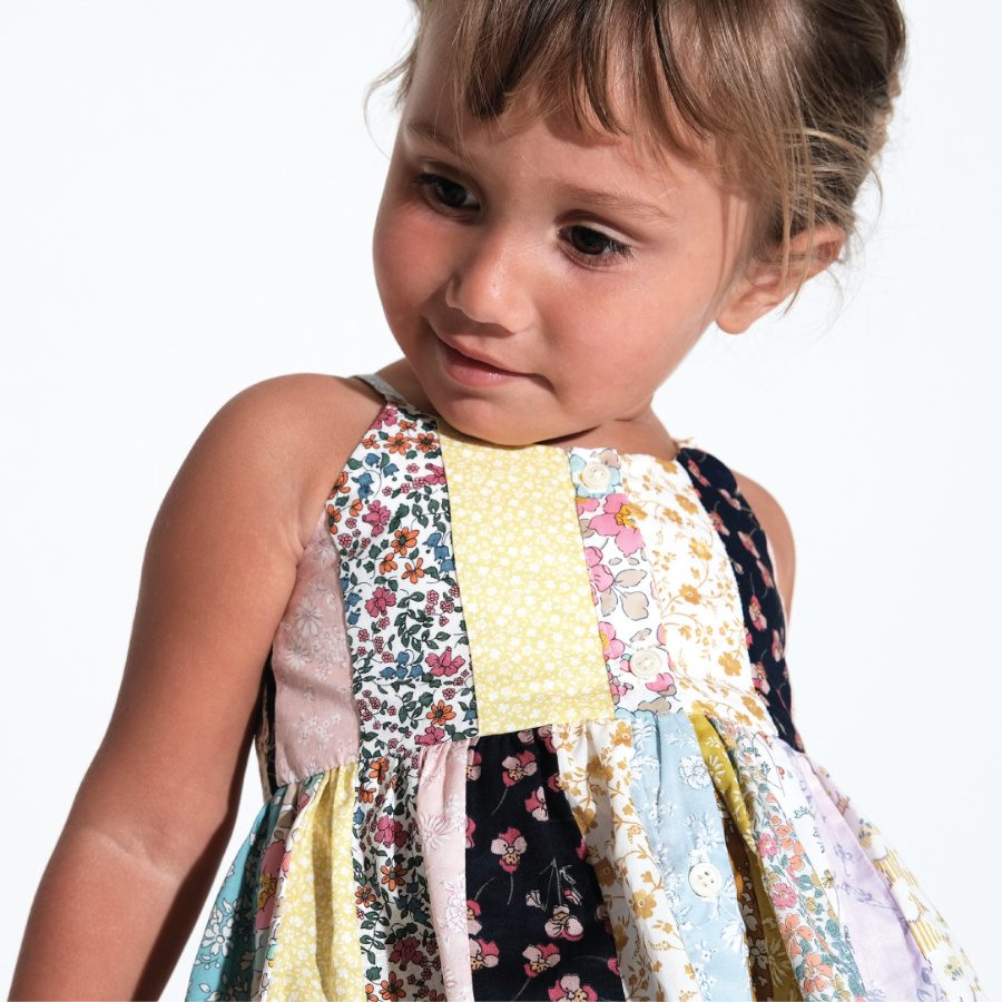 Beat the heat with ESTHER: Für den brütend heißen Großstadtsommer in Big Apple hat sich Designerin Diana Lugo bei den Briten bedient. Unter ihren Scherenhänden verwandelten sich die braven Blümchen in coole urbane Patchwork-Styles – wie gemacht für den New Yorker Nachwuchs!