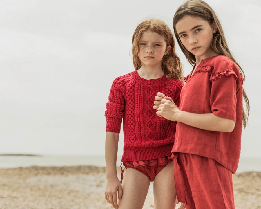 Looks für den Frühling 2019: Cable Knit und Leinen, in wärmendem Mohnrot von The New Society. Image © Pilar Hormaechea