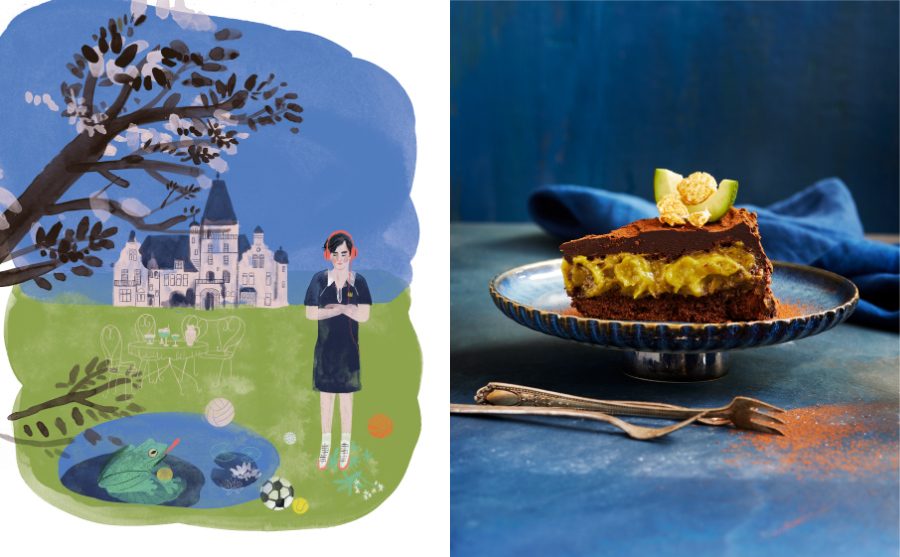 Royales Dessert aus dem Froschkönig: veganer Schokokuchen mit Avocadocreme-Füllung. Ill. © Rinah Lang/Foto © Katrin Winner