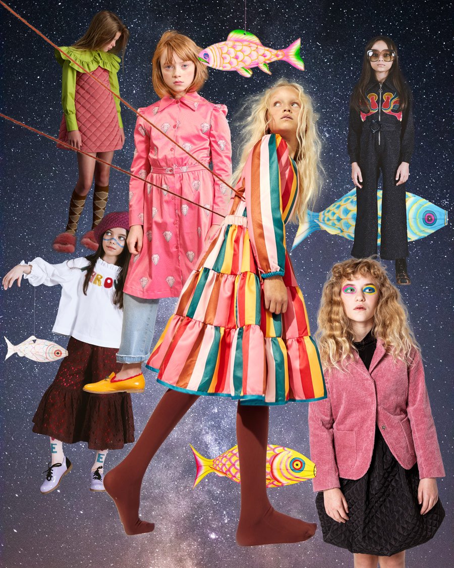 Von down-to-earth hält die Mode in Corona-Zeiten nicht sehr viel! (Von oben nach unten im Uhrzeigersinn): Retro-Jumpsuit von Raspberry Plum | Cordblazer von Christina Rohde | Gepaddetes Trägerkleid von Christina Rohde | Streifenkleid aus Satin von The Middle Daughter London | Hemdblusenkleid von The Animals Observatory | Jeanshose von The Animals Observatory | Lederslipper mit Faux-Fur-Futter von The Animals Observatory | Bluse mit Slogan und Rüschendetail von Raspberry Plum | Culottes von Raspberry Plum | Socken „Love Peace“ von Raspberry Plum | Schürzenkleid aus gestepptem Samt von Carbon Soldier | Bluse mit Rüschenkragen von Carbon Soldier | Fisch-Lampions von Petit Pan.