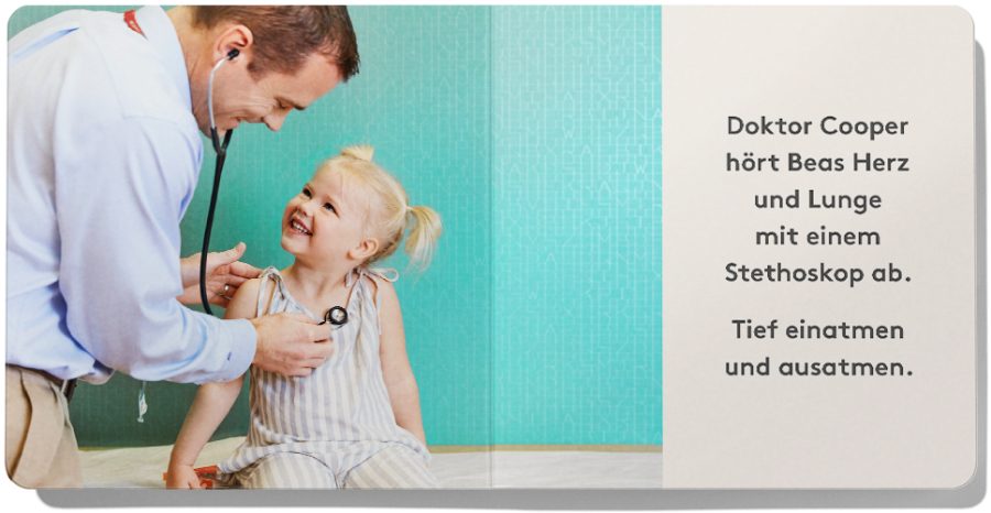 Nichts gegen Dr. Ziegenbart, aber laut LOVEVERY ist ein echter Doktor die eindeutig bessere Besetzung für ein Bilderbuch, das Mut machen soll! Denn realistische Bilder helfen den Kleinkindern, das Gesehene eins zu eins mit ihrer eigenen Welt zu verknüpfen – und in der ist der Arzt nun mal kein Ziegenbock und der Patient kein Frosch. Eine echte Patientin namens Bea, Tochter der Lovevery CEO Jessica Rolph, geht in diesem Bilderbuch als mutiges Vorbild voran: Der Check-up bei Dr. Cooper ist absolut nichts, vor dem man Muffensausen haben muss, auch wenn es wieder piekst …