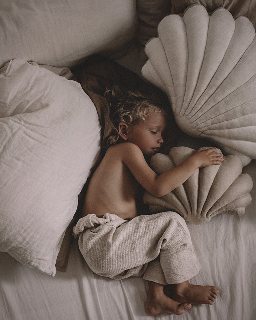 Muscheln zum Kuscheln gibt es bei TAMAR MOGENDORFF neuerdings auch aus Leinen. Image © Hannah Lemholt @honeypieliving