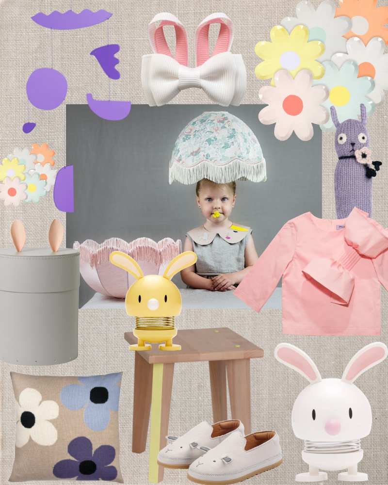 Hasenohren fürs Haupthaar, lammfromme Lederloafer oder ein Blüschen wie aus Zuckerwatte. Wir füllen das Osternest mal anders … (von oben nach unten im Uhrzeigersinn): Bunny Ears Hairclip von Milledeux | Gänseblümchen Pappteller von Meri Meri | Rabbit Doll von Lucky Boy Sunday | Bluse mit Schleifendetail von Moque | Bunny (weiß) von Hoptimist | Lammy Loafers von Donsje | Hocker von Paulette et Sacha | Bunny (gelb) von Hoptimist | Lucky Flower Kissenhülle von Lucky Boy Sunday | Rabbit Aufbewahrungsbox von Ferm Living | Mobile Paloma von Kumi Mood.