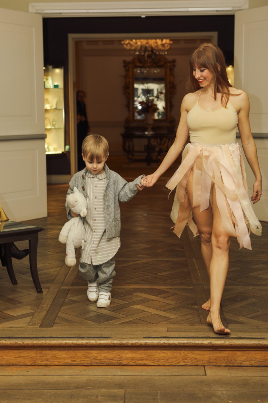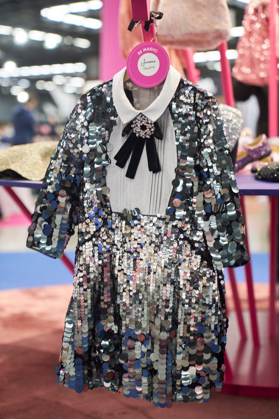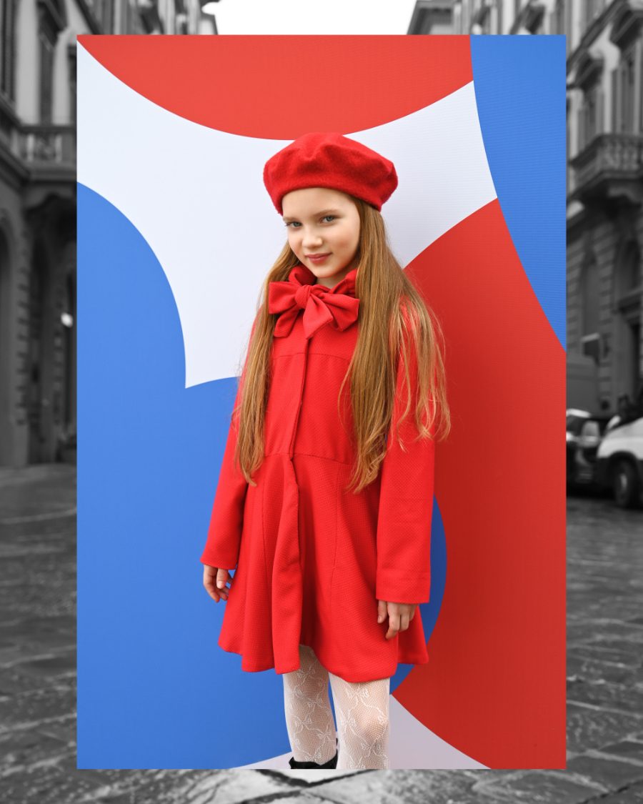 ÈKKI MILANO präsentierte ein leuchtend rotes Schluppenkleid für die Holiday Season 2025 auf der Pitti Bimbo 100 © Valentyna Pugachova