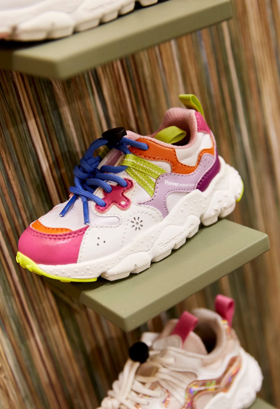 Auf dem Fuji Rock Festival, irgendwann zwischen Franz Ferdinand und Arcade Fire, kam den Trekking-Buddies Keisuke Ota und Yang Chao eine zündende Idee: Wanderschuhe, die im Gegensatz zu den trüben Trekking-Tretern Festival-Vibes versprühen. Ganz nach dem Motto: Das Wandern ist des Hipsters Lust! Inzwischen tragen nicht nur „fesche Bergfexe“ die japanischen Kult-Sneaker, sondern auch stilbewusste Stadtnomaden und Kinder: FLOWER MOUNTAIN FOR NATURINO verbindet die moderne Nippon-Ästhetik mit dem Know-how der italienischen Kinderschuh-Experten.