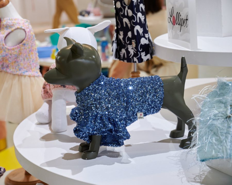 Who let the dogs out? Unter das Messegemurmel mischten sich Töne wie auf einer englischen Treibjagd: Drusilla, Demetrio und Mantecore waren als Ambassadors für die italienische Brand LOLLIPET unterwegs. Dachshündin Drusilla kam in deren „Forte dei Marmi“-Modell, einem Matrosenshirt für den retroaffinen Hundehalter. Dieser kann bei der Manufaktur mit Sitz in Prato auch ein maßgeschneidertes Chanel-Jäckchen oder einen Regenmantel im Brit-Style ordern. Selbst an die Swifties unter den Hundebesitzern haben die Couturiers gedacht …
