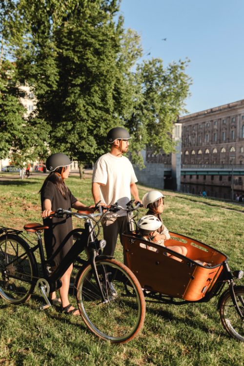 Great Gatsby und Big Lebowski. Doch wer jetzt denkt: Große Namen, nichts dahinter, der täuscht sich gewaltig. Die beiden E-Cargo Bikes sind nämlich nicht nur Augenweiden, sondern auch echte Kraftprotze: Voll aufgeladen stemmt ein Great Gatsby mühelos Strecken von bis zu 80km, sollte der Familienausflug in die Verlängerung gehen. Er ist auch kein Flachlandtiroler, denn er meistert jede Steigung so flink wie ein Schweizer Bergfex. Sensibel sind die Kraftbolzen aber auch: Beginnt es zu dämmern, schalten sich ihre LED-Lichter automatisch ein.
