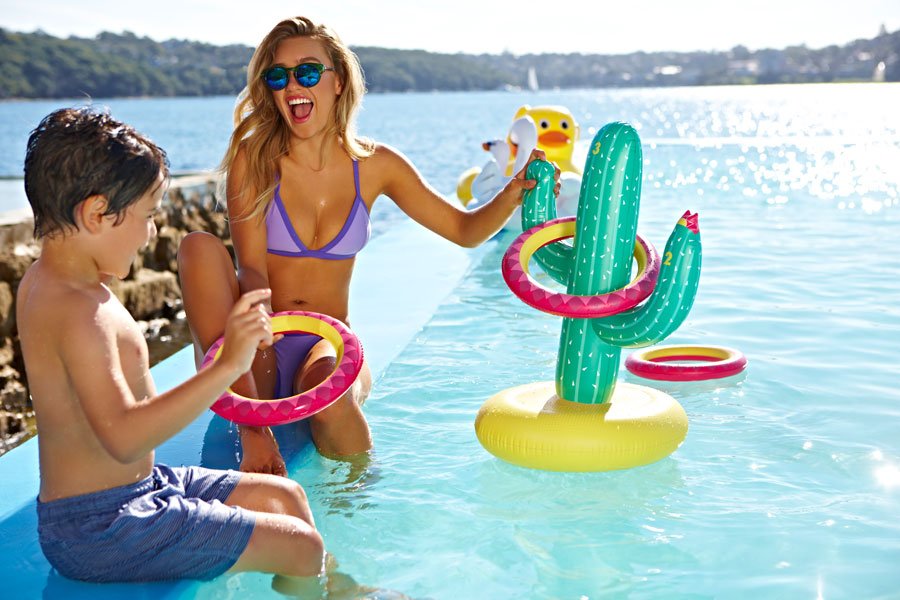 Poolspiel im Aussie-Style: Endlosen Spielspaß für Groß und Klein bringt der aufblasbare Kaktus mit Wurfringen © Sunnylife