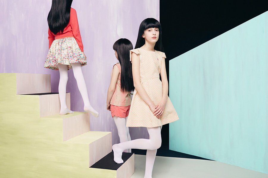 Die Farbpalette der Frühjahr/Sommer-Kollektion 2015, von ausdrucksstarken Farben der Pop-Art inspiriert, zaubert die Energie und Intensität des Sommers herbei. Die Mädchen können sich auf Farbtöne wie Rhabarber, Glockenblumenblau, Erdbeere und pastellige Eiscremefarben freuen. Die Babylinie für Mädchen ist in den Tönen Rhabarber, Rosa und Elfenbeinweiß erhältlich. Die Jungs erfreuen sich an mutigem Johannisbeerrot und Mintgrün, die sich von den Farbtönen Wasserblau, Taubengrau und Anthrazit absetzen.