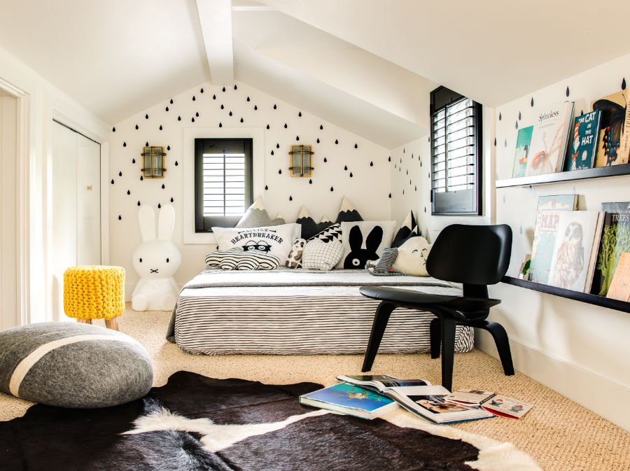 Bei Platzmangel werden Räume gerne doppelt genutzt. Und so kann ein Kinderzimmer schnell auch mal als Gästezimmer dienen. Wenn dann Einrichtung und Deko, wie in diesem kalifornischen Strandhaus kindgerecht, aber dennoch nicht infantil wirken, werden sich Groß und Klein sicherlich wohlfühlen.