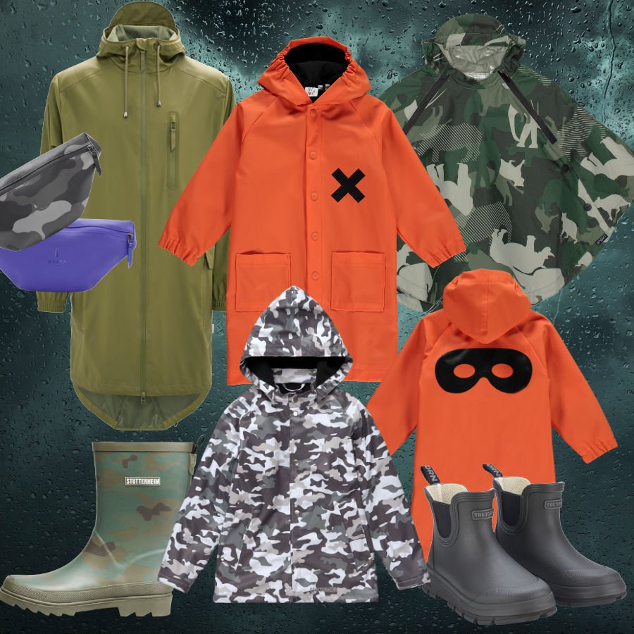 Der Wind jault, es hagelt Tischtennisbälle, das Gartenhäuschen vom Nachbarn wurde soeben mit einem großen Wumms umgeweht und du, du pfeifst auf jede Wetterwarnung. Angst ist für dich ein Fremdwort, denn du bist ein geborener Abenteurer. Für Draufgänger wie dich haben wir die perfekte „Ausgeh-Uniform“ – Regenjacken, mal ganz in Camouflage, in mutigem Neon-Orange oder für Erwachsene in Sage-Green …