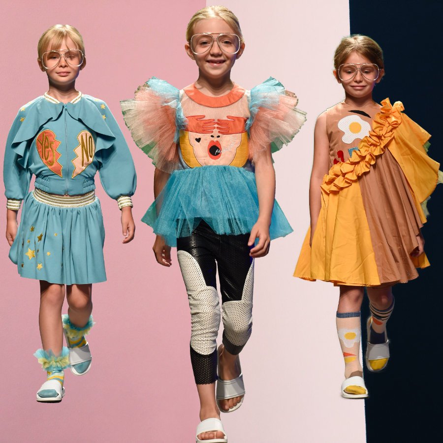 Kein Zutritt für Miesepeter! So ähnlich hätte es auf den Schildern vor der Fortezza da Basso heißen können, denn auf der Pitti Bimbo 87 regierte der (modische) Optimismus in all seiner psychedelischen Pracht: Block-Streifen, wie wir sie von Twiggy aus den Sixties kennen; Knallfarben, die noch stärker leuchteten als auf einem Roy Lichtenstein-Gemälde und Polka-Dots, so plakativ wie bei Mary Quant, rundeten das Leitmotiv der Kindermodemesse ab. Mit P.O.P. Pitti Optical Power verwandelte sich Florenz in ein eklektisches Kaleidoskop und jedem war klar, hier steigt die bunteste Fashionparty des Jahres! Ausgelassen feierten auch die Models auf dem Runway, wo zu Hip Hop-Klängen und Ballettmusik die Sommermode Trends für 2019 lanciert wurden.
