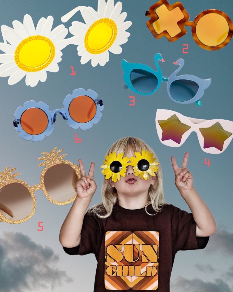 Willst auch du den Sommer auf der Nase tragen? Klick‘ einfach auf die Links und gelange so zu deinem Wunschobjekt … 1 Daisy Sunnies (für Damen und Kinder ab 12) von Sunnylife | 2 XO Sonnenbrille von Sons + Daughters | 3 Swan Sunglasses von Stella McCartney Kids | 4 Cat-Eye Sonnenbrille mit Sternen von Stella McCartney Kids | 5 Ananas Sonnenbrille für Damen von Gucci Eyewear | 6 Pixie Sonnenbrille von Sons + Daughters.