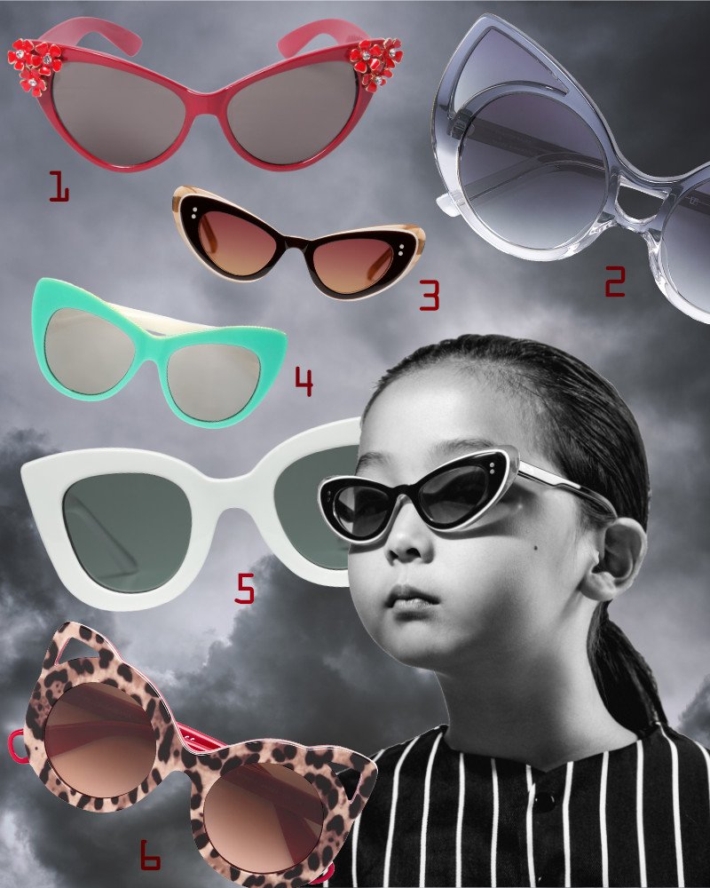 Alle Sonnenbrillen sind hier verlinkt: Klick‘ einfach auf die Links und gelange so zu deinem Wunschobjekt … 1 Cat-Eye Sonnenbrille mit Verzierung von Monnalisa | 2 Cat-Eye Sonnenbrille für Damen von Linda Farrow | 3 Josie Sonnenbrille von Sons + Daughters | 4 Cat-Eye Sonnenbrille von Stella McCartney Kids | 5 Cat Cat Sonnenbrille von Sons + Daughters | 6 Sonnenbrille im Cat-Eye-Stil von Dolce & Gabbana Kids.