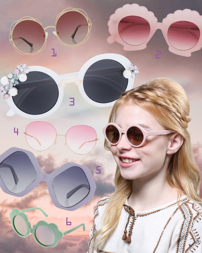 Alle Sonnenbrillen sind hier verlinkt: Klick‘ einfach auf die Links und gelange so zu deinem Wunschobjekt … 1 Sonnenbrille Sienna von Winkniks | 2 Shell Frame Sunglasses von Stella McCartney Kids | 3 Sonnenbrille mit Verzierung von Monnalisa | 4 Damen-Sonnenbrille Aimi von Mykita | 5 Sonnenbrille Coco von Winkniks | 6 Daisy Sunglasses von Zoobug London.