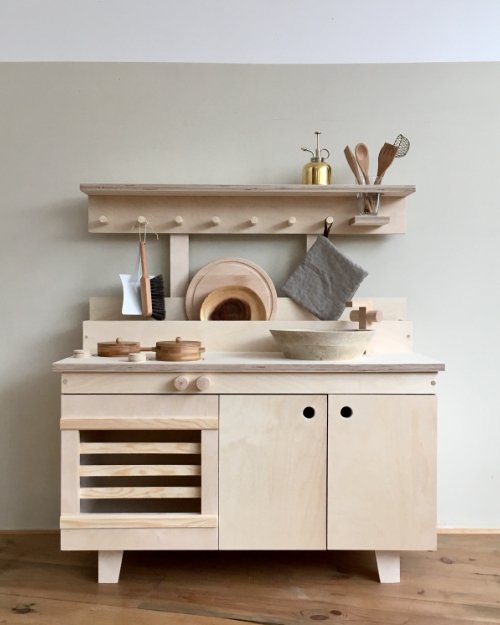 Eine gemütliche Slow Living-Atmosphäre wird mit dieser Spielküche aus unbehandeltem Birkensperrholz auch in die eigenen vier Wände einziehen. Ob sich der Kochnachwuchs dann am Umi-Herd an die ein oder andere japanische Köstlichkeit wagen wird? Möglich wär’s, denn man kann sich lebhaft vorstellen, wie hier Misosuppe und Teriyaki vor sich hin schmurgeln …