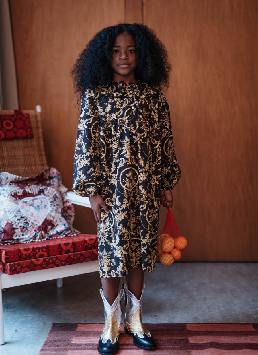 Keine Farm wurde so oft geplündert wie die kleine Farm in der Prärie. So auch von der Londoner Designerin Aleksandra Matthews, die uns neuerdings mit ihrer eklektischen Americana-Lebensfreude boostern will. Dabei ist das Prairie-Dress von Raspberry Plum keine müde Vintage-Kopie, sondern eines der powervollsten Statement-Kleider überhaupt.