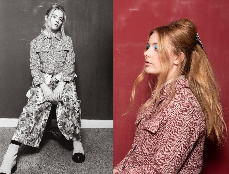 Stilmix: Zur ZARA Tweed-Jacke im Preppy-Style trägt Fran eine Blumen-Hose von REPOSE AMS, Hemd THE SUNDAY COLLECTIVE, Boots RIVER ISLAND