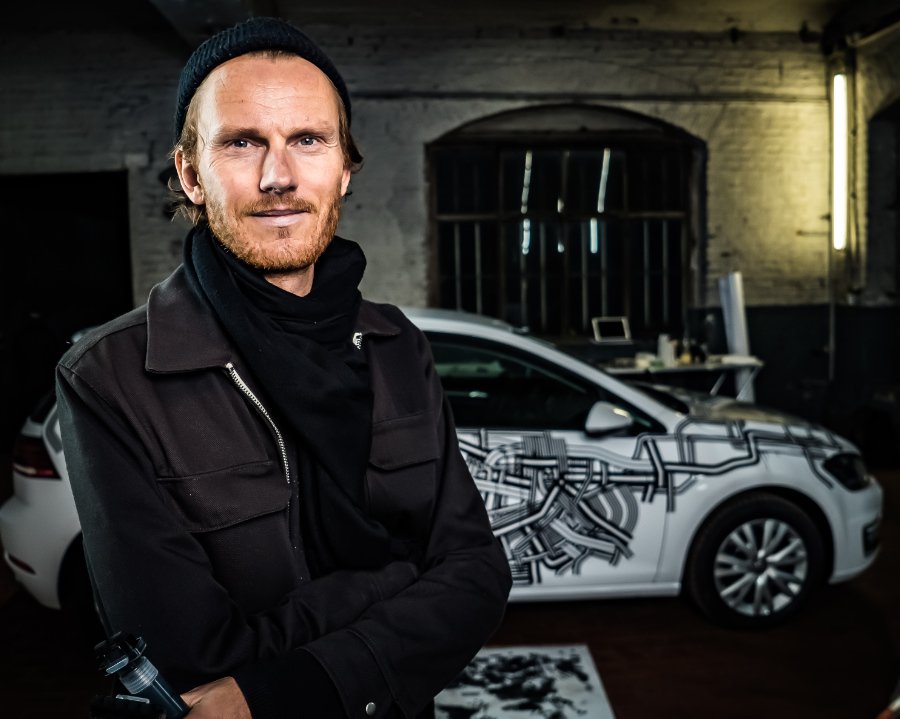 Ausgestattet mit schwarzer Tinte und einem Faible für die Linienkunst hat Steffen Seeger den e-Golf in ein Freiheitssymbol verwandelt … Foto © Christoph Bauer