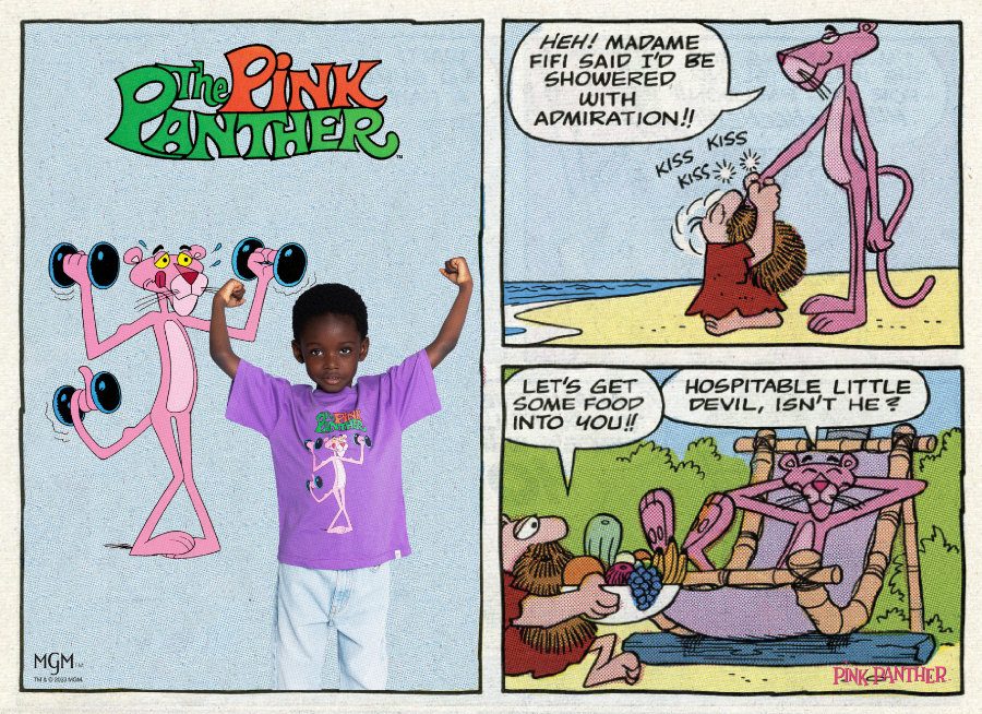 Anders als sein schwarzer Artgenosse ist der pinke Panther garantiert nicht vom Aussterben bedroht. In freier Wildbahn streunt er überall herum: auf Handyhüllen, Socken, Hoodies … Sogar einer eigenen Pantone-Farbe, dem Pink Panther Pink, darf er sich rühmen. Zum 60. Geburtstag bringt ein Pariser Streetwear-Label die betagte Raubkatze der Gen Z näher: PINK PANTHER X FINGER IN THE NOSE ist eine der stärksten Streetwear Collabs seit der „Panther-Aufzeichnung“. Rosaroter Panther-Plüsch? – No way!