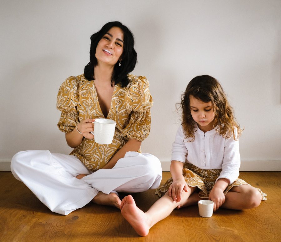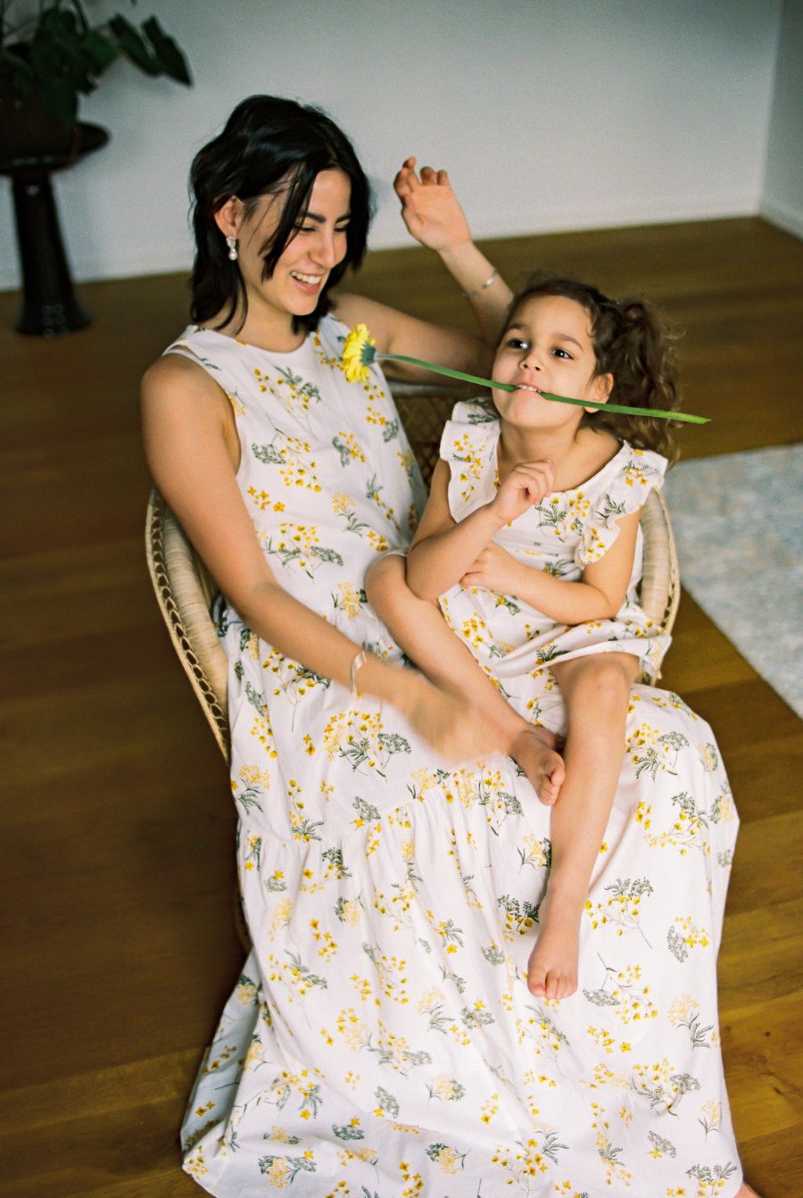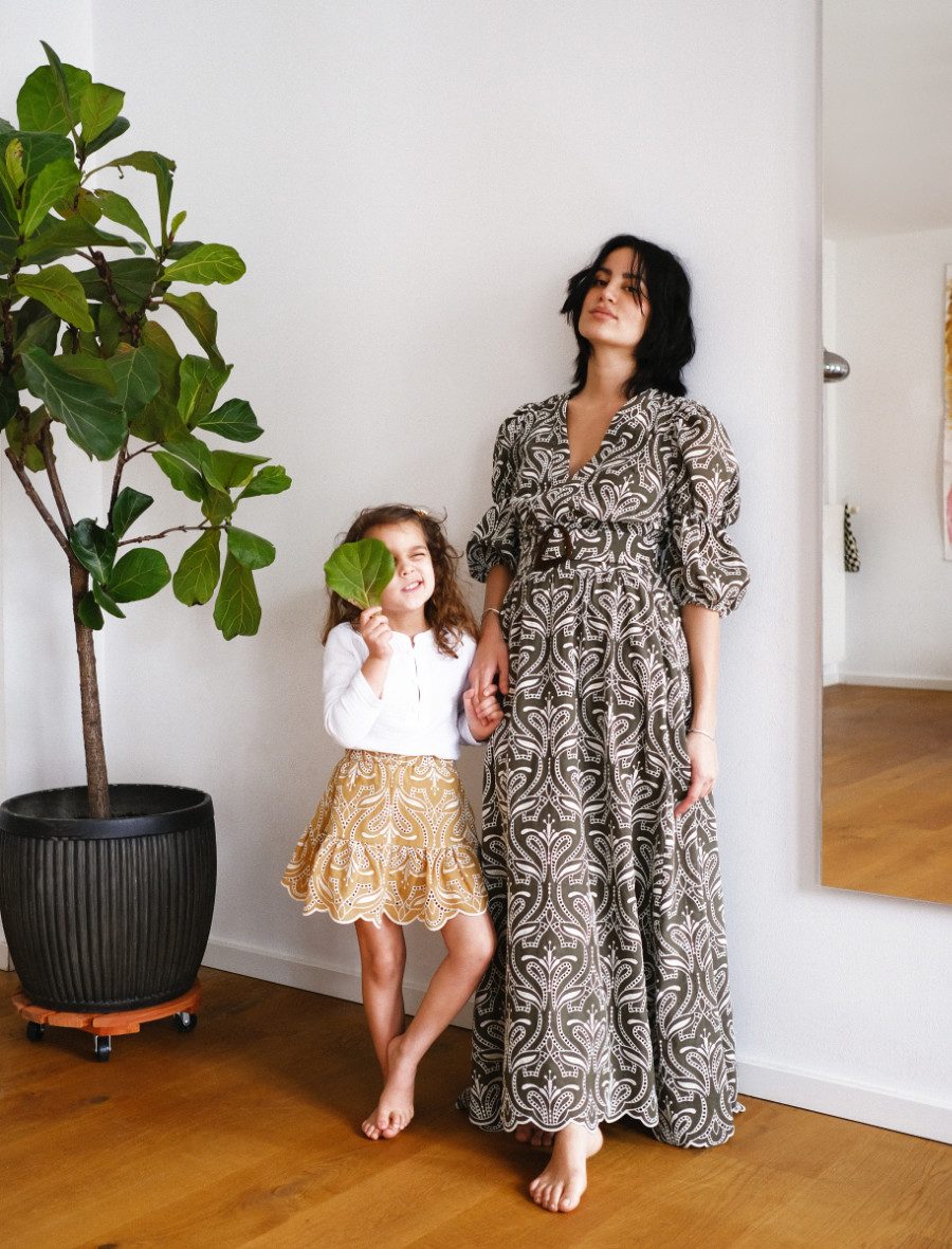 Aurora und ihre Tochter Philia strahlen die Natürlichkeit aus, die IVY & OAK mit seiner nachhaltigen Mode vermittlen will