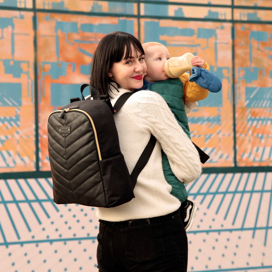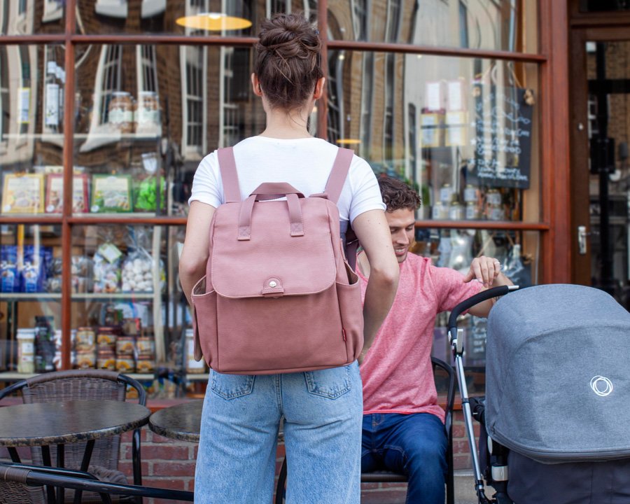 Incognito unterwegs: Der elegante vegane Gabby Backpack ist das Geheimversteck für Windeln, Wipes und Wickelunterlage