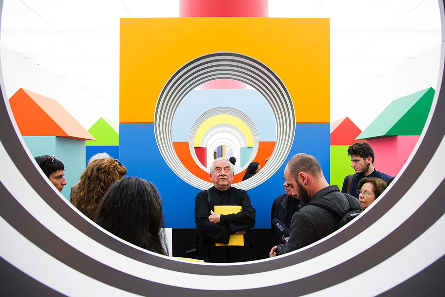 Im Prinzip des Baukastensystems spiegelt sich die wichtige Erkenntnis Fröbels wider, dass Kinder durch das Spiel noch mehr als durch die Sprache die Welt entdecken. Das Spiel fördert nämlich grundlegende Entwicklungsfähigkeiten wie Wahrnehmung, Haptik, Konstruktion und Dekonstruktion. Die Rolle des Spiels in sämtlichen Formen des menschlichen Handelns ist zu einer zentralen Botschaft des Künstlers Buren geworden. Genauso kennzeichnend für seine Kunst ist übrigens sein unverwechselbares Markenzeichen, nämlich die hypnotischen Kreise, die durch das Wechselspiel von exakt 8,7 cm breiten schwarzweißen Streifen entstehen.