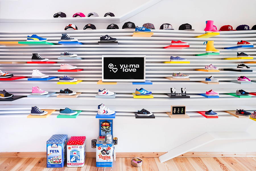 Bei Yumalove sind neben etablierten Sneaker Brands wie ASICS, New Balance, PUMA, Converse, Hummel und Vans auch eine Reihe von liebevoll ausgewählten Einzelstücken erhältlich. In enger Zusammenarbeit mit Berliner Labels entstehen außerdem sehr persönliche Capsule Kollektionen: Aktuell gibt es Wendejacken, T-Shirts und Rucksäcke, allesamt mit dem Yumalove Brand Logo versehen.